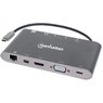 Ic Intracom Mexico Sapi De Cv Manhattan Docking USB-C 11 ptos, HDMI/Mini DP/VGA, USB-C PD/3xUSBv3.2, Red/Audio/SD/micro SD - 5 x puertos USB - 3 x USB 3.0 - Red (RJ-45) - HDMI - VGA - Mini DisplayPort - Línea salida de audio - Cableado
