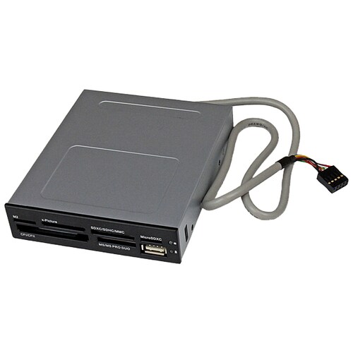Startechcom Mexico S De Rl De Cv StarTech.com Adaptador Bahia Frontal 3.5in Lector para Tarjetas Memoria Flash SD CF SDHC XD M2 MS 22 en 1 - CompactFlash - Tipo I, CompactFlash Tipo II, SD, miniSD, microSD, SDHC, SDXC, MultiMediaCard (MMC), Reduced Size MultiMediaCard (MMC), Memory Stick, Memory Stick Duo, ... - 1 Número total de puertos USB